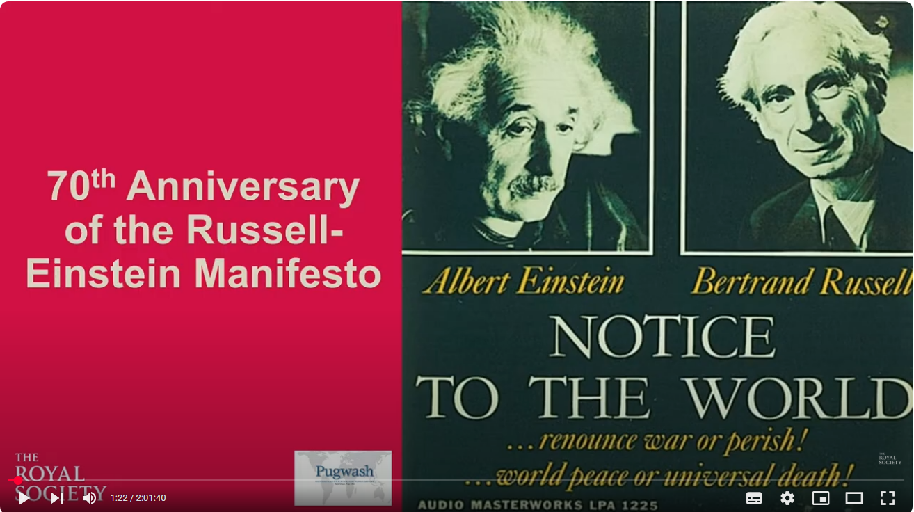 The Royal Society (London) og den internationale Pugwash organisation afholder en konference 8. juli 2025 kl. 18:00 i anledning af 70 års jubilæet for Russell-Einstein